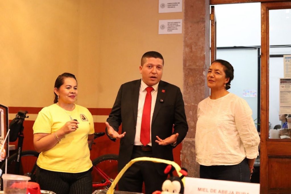 Asimismo aprovecho para conversar con las y los productores que participaron en la exposición y venta de productos en el Congreso de Michoacán, generados a partir de las cooperativas que se crearon en Michoacán, como una forma de detonar su crecimiento y afianzar su operatividad.