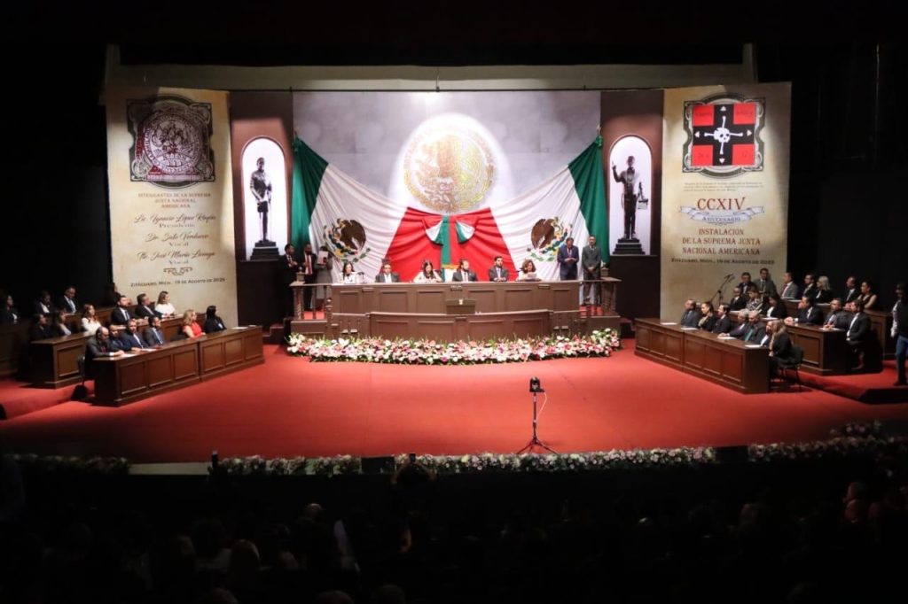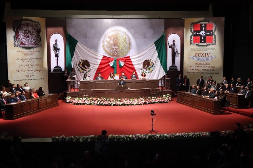 Zitácuaro, Michocán, 19 de agosto de 2025.- La 76 Legislatura del Congreso del Estado, entregó la condecoración “Suprema Junta Nacional Americana” a la Fiscalía General del Estado, esto en el marco de la Sesión Solemne celebrada en el Teatro Juárez en la ciudad de Zitácuaro.