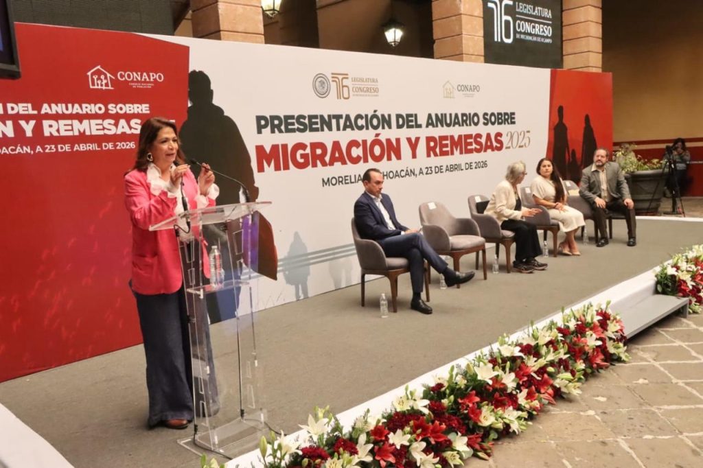 En el marco de la presentación del Anuario sobre Migración y Remesas 2025, actividad que se llevó a cabo en el patio del Palacio Legislativo del Congreso del Estado, la legisladora local, reconoció que, si bien aún hay mucho trabajo por realizar en esta materia, el Congreso de Michoacán legisla para fortalecer las políticas públicas emprendidas tanto por el Gobierno del Estado, como el Gobierno de la República, en favor de las y los migrantes.
