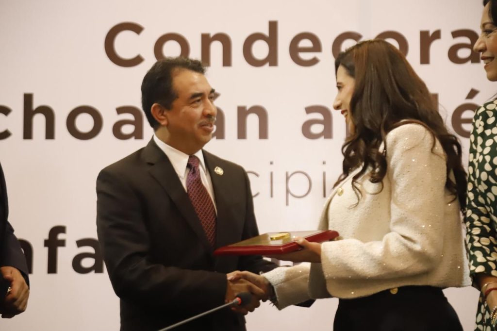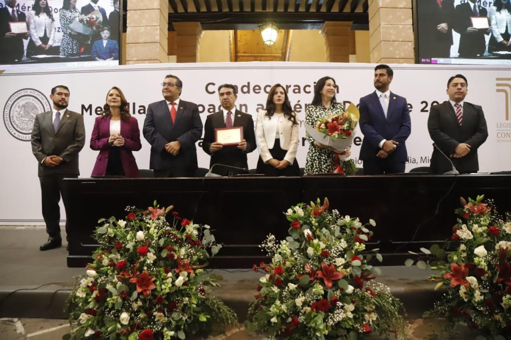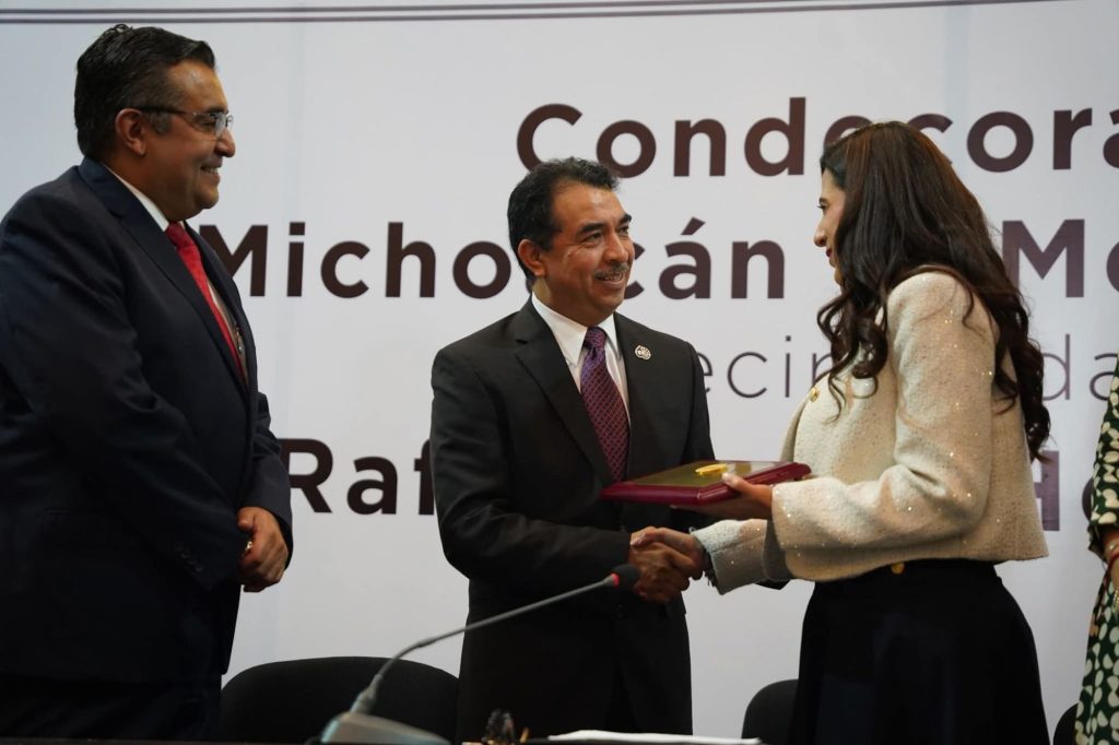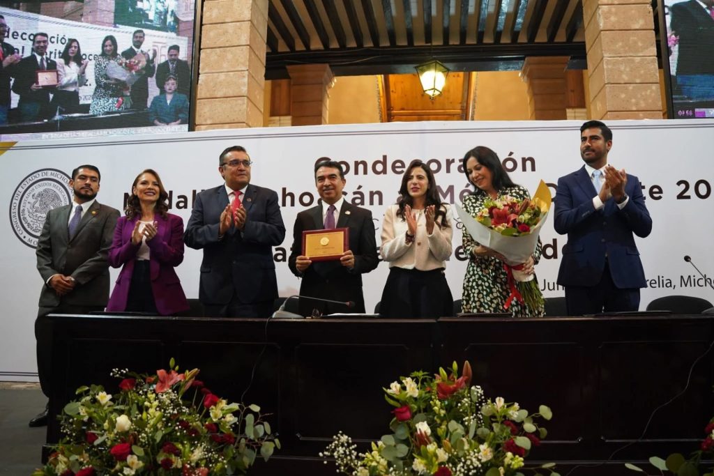 La diputada Giuliana Bugarini Torres, presidenta de la Mesa Directiva del Congreso del Estado, señaló que esta condecoración, reafirma el papel de la educación como piedra angular del desarrollo de Michoacán.