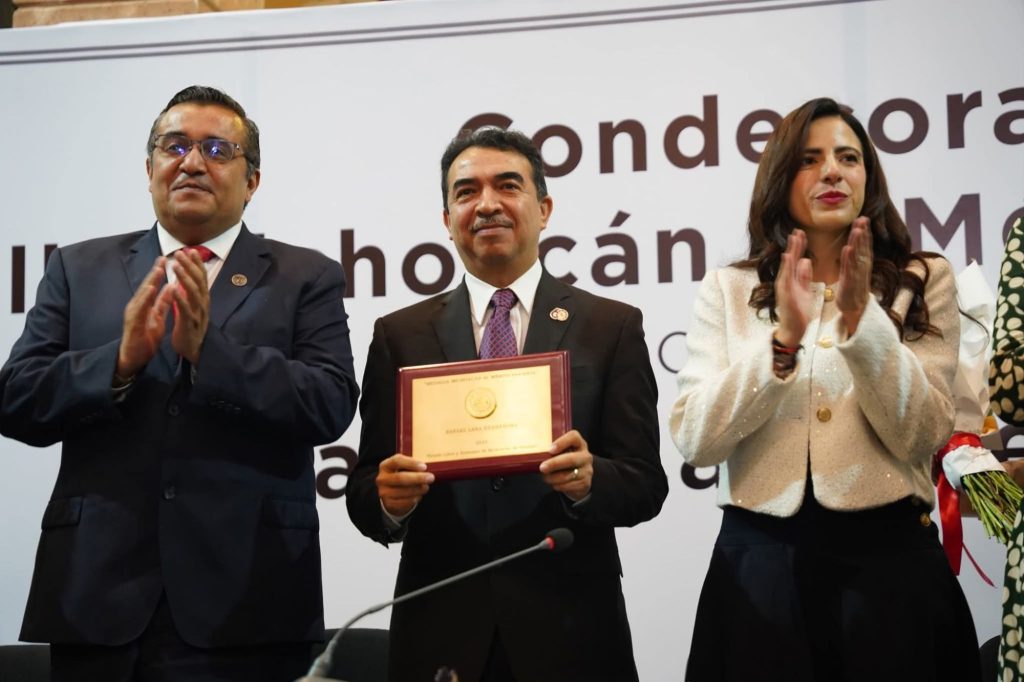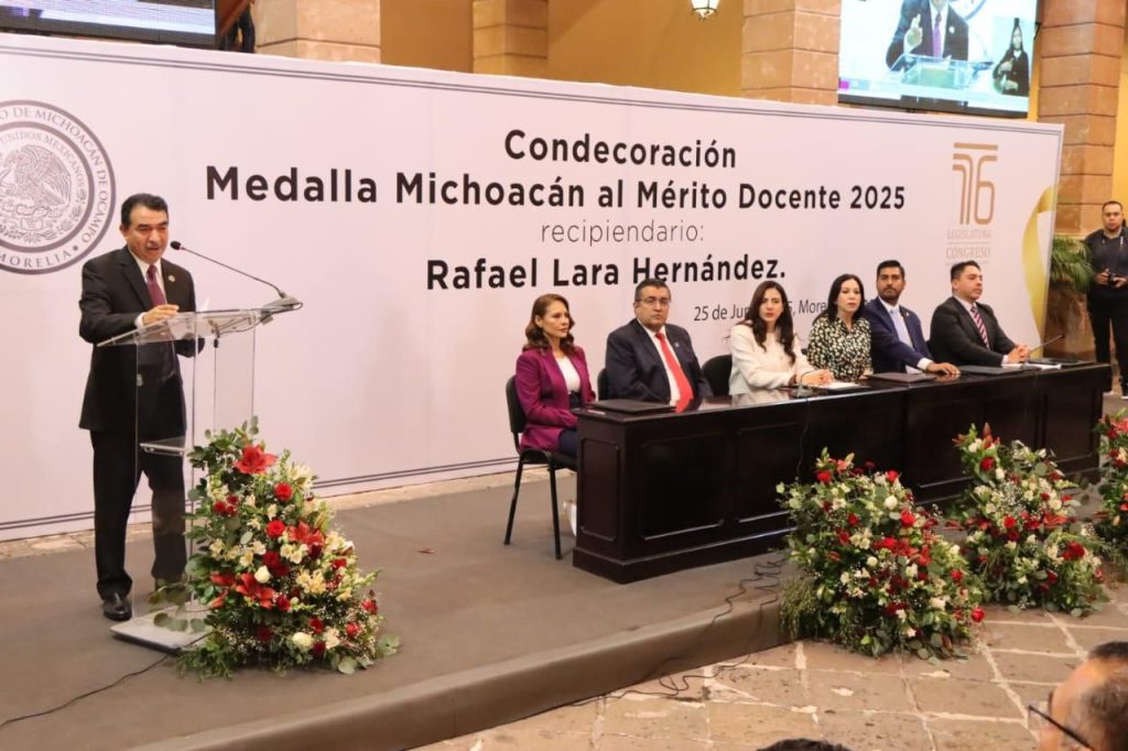 “Este Congreso, en representación del pueblo de Michoacán, honra hoy a un docente cuya trayectoria no solo es destacada, sino profundamente formativa e inspiradora. Me refiero al doctor Rafael Lara Hernández, ejemplo de vocación, de innovación y de compromiso con la transformación educativa desde la raíz de nuestras instituciones públicas”, aseveró.