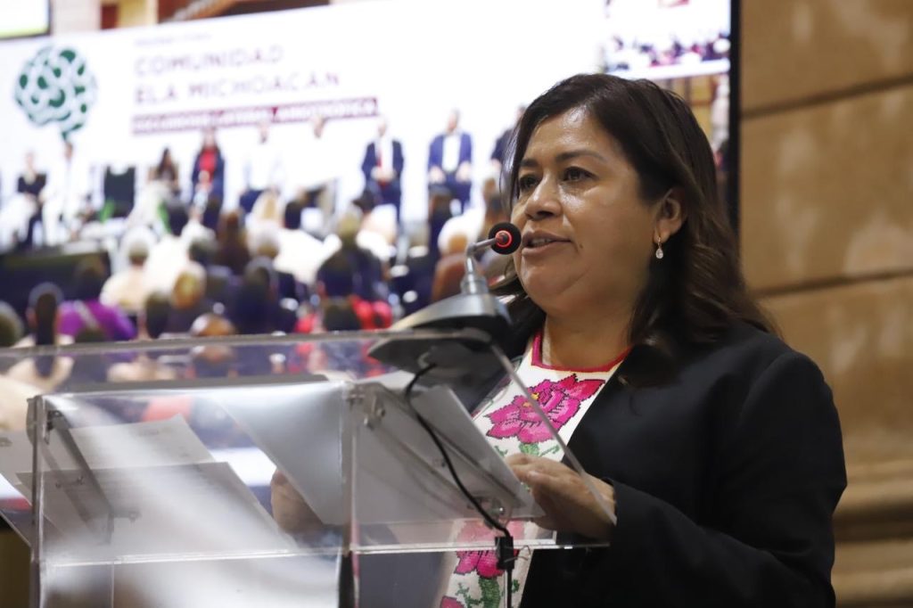 Morelia, Michoacán, a 20 de junio del 2025.- Desde este Congreso vamos a legislar para visibilizar la Esclerosis Lateral Amiotrófica (ELA), vamos a trabajar para que se reconozca desde la Ley, el carácter excepcional de esta enfermedad y que se garantice el acceso a medicamentos de alta especialidad, así lo dejó de manifiesto la diputada Giuliana Bugarini Torres, presidenta de la Mesa Directiva del Congreso del Estado.