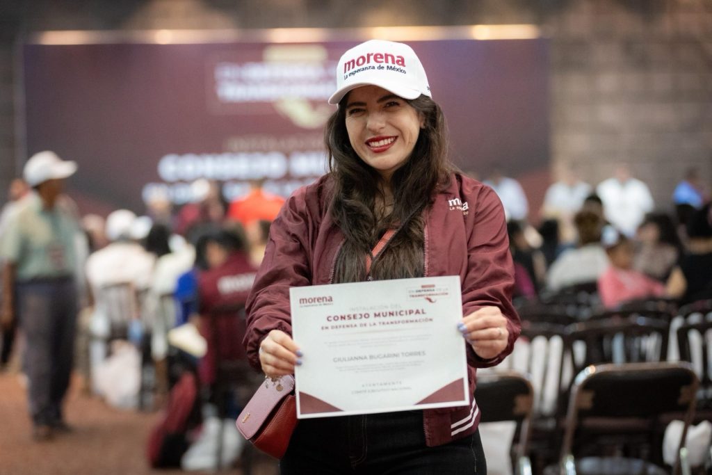 Morelia, Michoacán, a 19 de abril de 2026.- En un paso clave para fortalecer la estructura territorial de Morena, Giulianna Bugarini, consejera nacional en Michoacán, tomó protesta como una de las presidentas de los comités seccionales conformados en Morelia, en el marco de la Instalación del Consejo Municipal en Defensa de la Transformación.