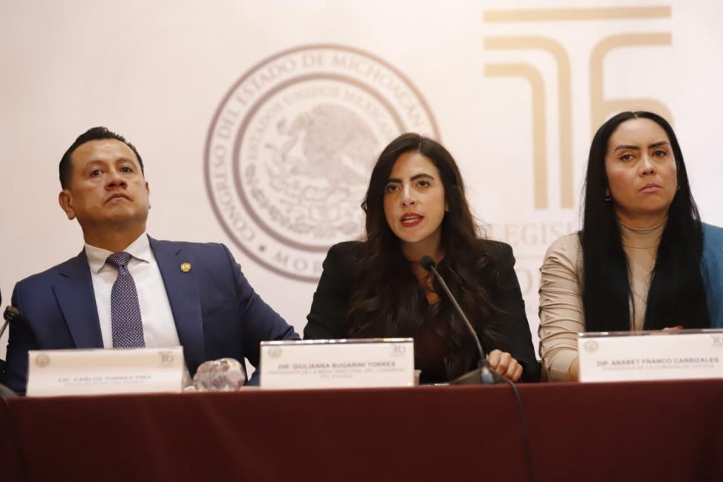 Morelia, Michoacán, a 16 de diciembre de 2025.- Al recibir de manos del Fiscal General del Estado el Plan de Persecución del Delito 2025-2034, la Presidenta de la Mesa Directiva, diputada Giulianna Bugarinni Torres, reiteró la disposición del Poder Legislativo para seguir construyendo un sistema de justicia más fuerte, más moderno y más digno para Michoacán.